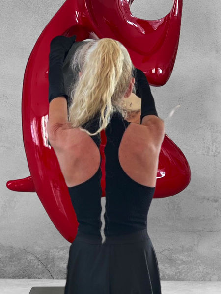 Colors have a huge impact on our emotions, perceptions, spiritual and physical well- being. Red provokes strong emotions but does not always signal aggression or danger. Love, energy, and desire are all associated with red, along with determination. The woman’s true determination derives from passion. This sculpture depicts the body of a female figure standing on a granite pedestal. She rotates 360 degrees powerfully dominating her surroundings.