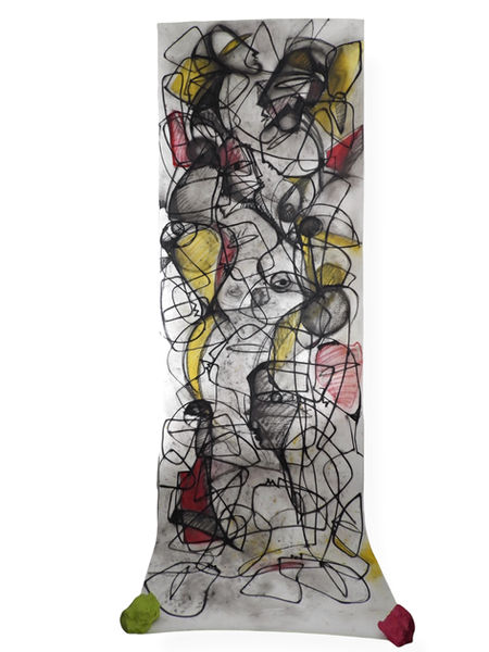 It is a late summer evening, nobody’s home, it is me home alone. I light my mood by starting furiously drawing and painting and my mind wanders. A sudden intuitive insight into the reality makes me aware of the emptiness of the moment. The Home Alone work on paper, depicts togetherness by placing emphasis on being alone; quite an irony. It is a lyrical "thinking out loud", a reflection on what it is to be a human and 'out here' in the big wide world. It is a personal epiphany—I decided that, for the good of my soul, I cannot be alone and need to work with others calling society to come together as one.